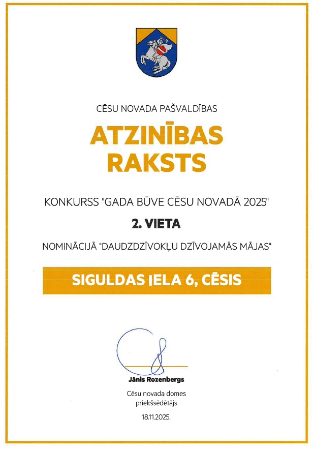 Atzinības raksts konkursā "Gada būve Cēsu novadā" 2024.gadā
